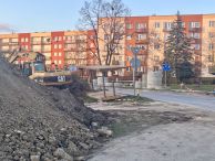 Na ulicy Klonowej odhumusowano teren, czyli usunięto wierzchnią warstwę gleby, organizowane jest zaplecze budowy wykonawcy, rozpoczęła się budowa kanalizacji deszczowej.