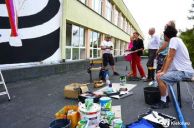 Artyści pracę nad muralem rozpoczęli w piątek, 16 sierpnia od przygotowania podłoża. W niedzielę wieczorem i w nocy dzięki rzutnikowi przenieśli na ścianę szkic muralu.