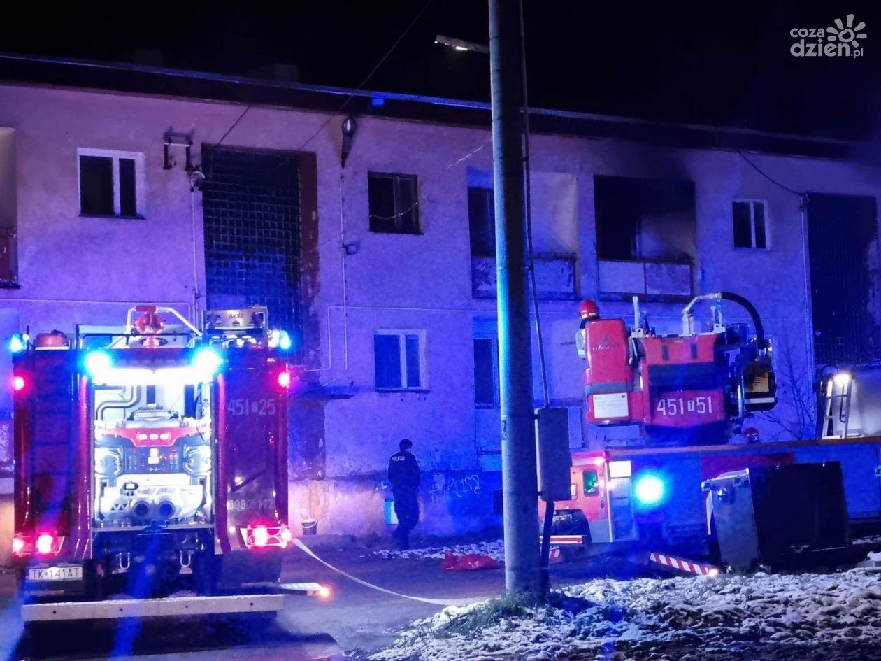 Mieszkańcy palącego się mieszkania ewakuowani przy pomocy drabiny strażackiej