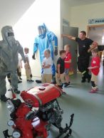 Dzieci zobaczyły również stanowisko kierowania komendanta powiatowego. Największy entuzjazm i podziw wzbudziła wśród uczniów prezentacja samochodów oraz sprzętu ratowniczo-gaśniczego. Polała się również woda z prądownicy przez uczestników spotkania.
